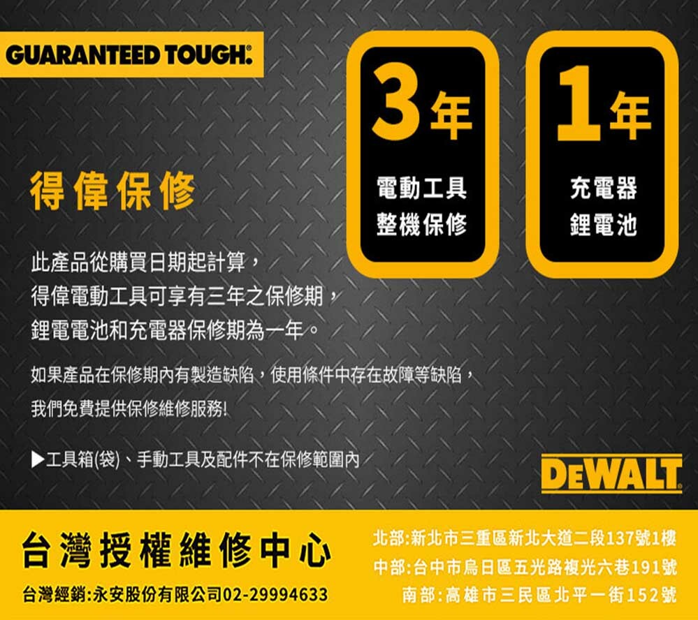 商品皆為美國DEWALT得偉-台灣公司貨。