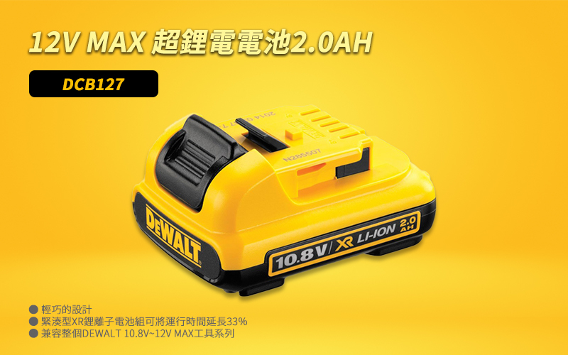 美國 DEWALT 得偉 10.8V (12V MAX) 超鋰電電池 2.0Ah B-DCB127
